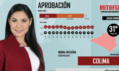 Colima, México, Avanzada (23/06/2023).- Pese a que apenas lleva 18 meses como gobernadora, Indira Vizcaíno Silva continúa en el penúltimo lugar de aprobación con solo 38.6...