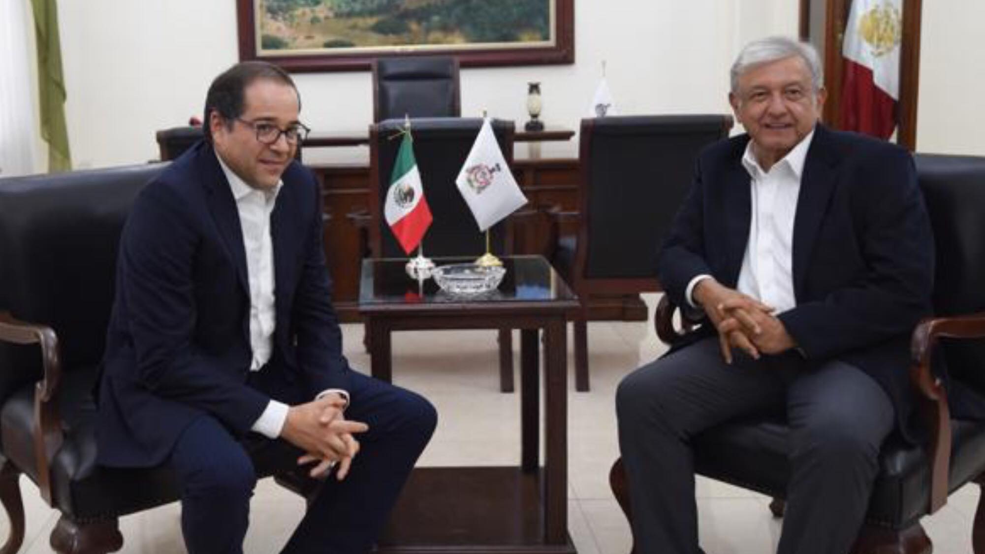 Colima, México, Avanzada (16/10/2018).- Durante la visita del presidente electo de México, Andrés Manuel López Obrador, el gobernador José Ignacio Peralta Sánchez le pidió ayuda frente...