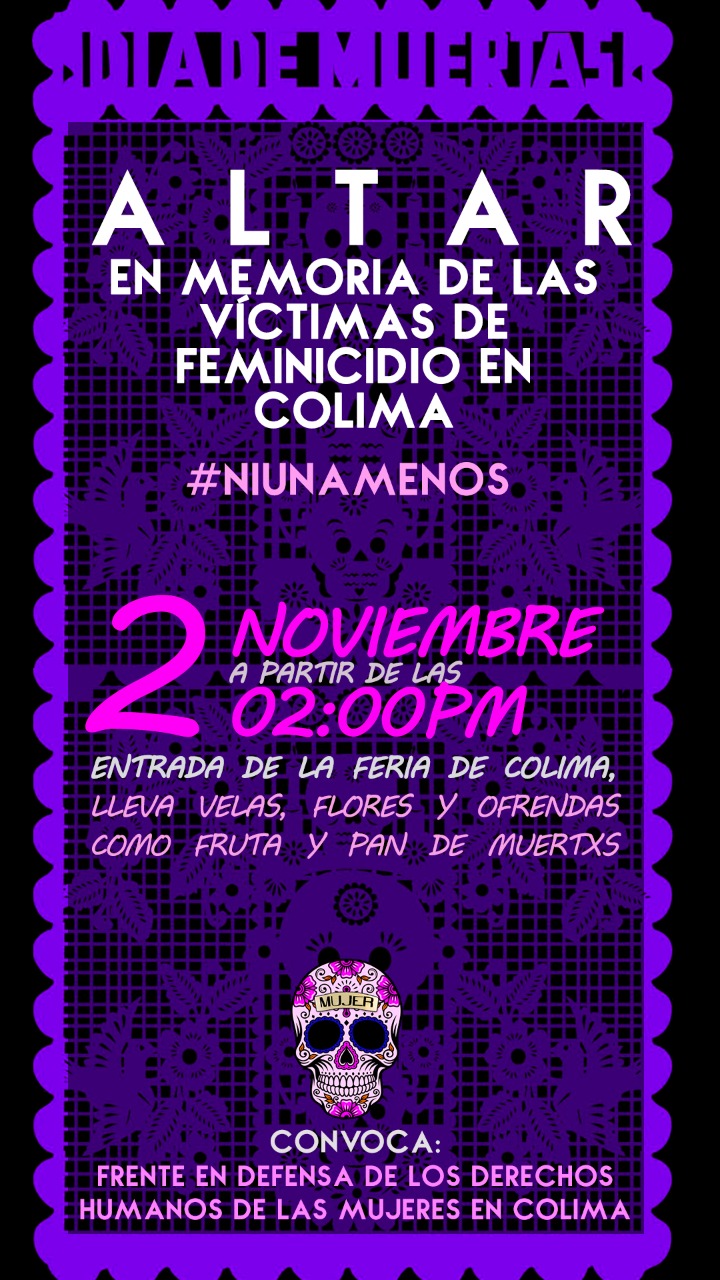 Colima, México, Avanzada (01/11/2018).- El Frente en Defensa de los Derechos Humanos de las Mujeres en Colima anunció la instalación de un altar en memoria de...