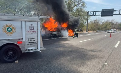 Colima, México, Avanzada (10/05/2025).- La tarde de este sábado se registró el incendio de una camioneta particular sobre la autopista Colima-Guadalajara, a la altura de la...