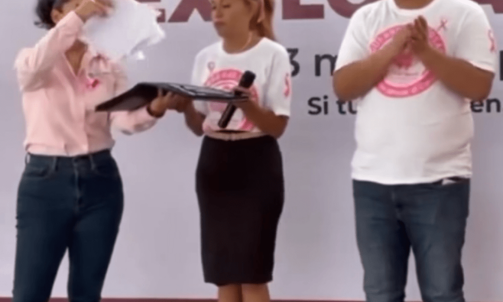 Colima, México, Avanzada (27/10/2025).- A los dos minutos de su intervención, el micrófono de Sarahí Margarita Méndez, sobreviviente de cáncer de mama, dejó de funcionar. Nadie...