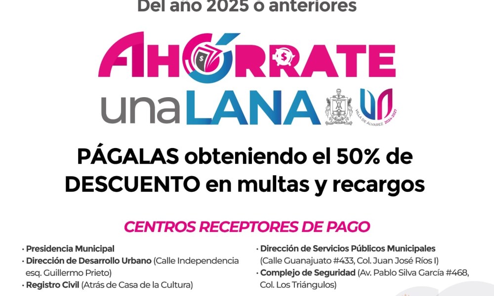 Municipio rebaja el 50% en multas y recargos Villa de Álvarez, Colima, Comunicado (21/11/2025).- Para las personas que adeuden infracciones viales de los años 2025 y...