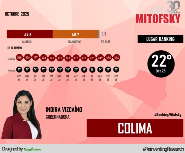 Colima, México, Avanzada (17/11/2025).- La casa encuestadora Mitofsky dio a conocer su más reciente estudio de opinión pública “Gobernadora y Gobernadores de México: su aprobación ciudadana”...