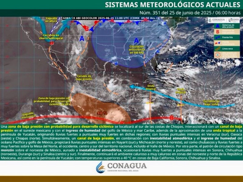 Colima, México, Avanzada (25/06/2025).- Este miércoles, Colima enfrenta condiciones meteorológicas adversas, con pronóstico de lluvias puntuales fuertes, acompañadas de descargas eléctricas y posible caída de granizo,...
