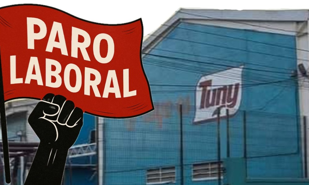 Colima, México, Avanzada (26/05/2025).- Las banderas de huelga ondean ya en las instalaciones de la empacadora de atún Tuny, propiedad del Grupo Mar, ubicada en el...