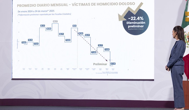 Ciudad de México, Avanzada (25/03/2025).– La presidenta Claudia Sheinbaum Pardo resaltó que, como resultado de la Estrategia Nacional de Seguridad, el país ha registrado una reducción...