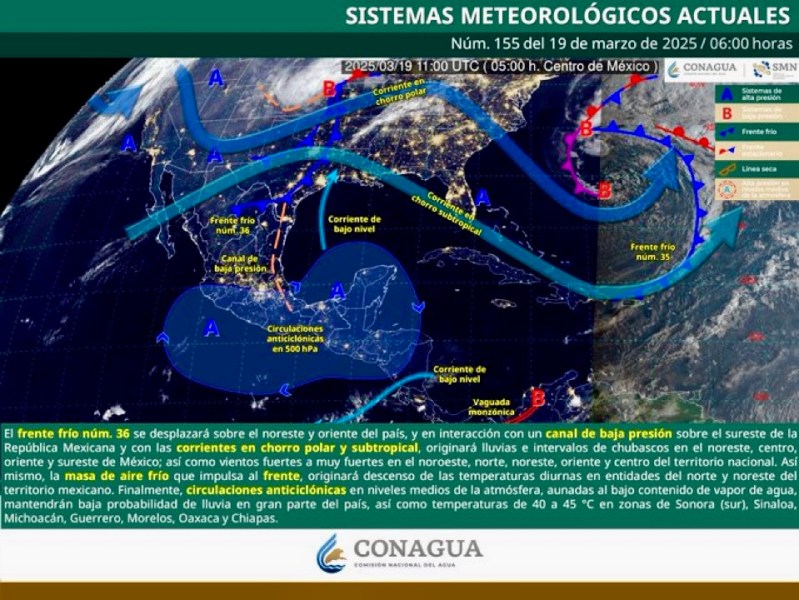 Colima, México, Avanzada (19/03/2025).- El estado de Colima experimentará temperaturas máximas de entre 35 y 40 grados Celsius durante este miércoles, informó el Servicio Meteorológico Nacional....