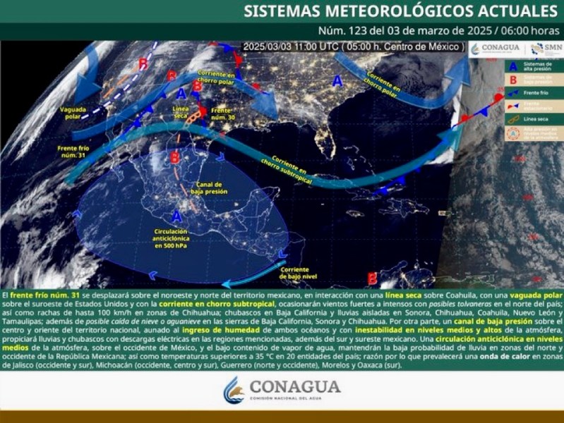 Colima, México, Avanzada (03/03/2025).- El estado de Colima registrará temperaturas máximas de 35 a 40 grados Celsius este lunes, según el pronóstico del Servicio Meteorológico Nacional....