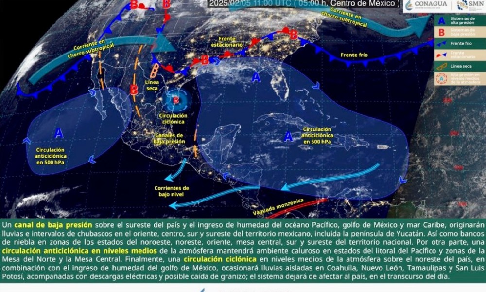 Colima, México, Avanzada (05/02/2025).- Para este miércoles, el estado de Colima registrará temperaturas máximas de hasta 40 grados Celsius, debido a la presencia de una circulación...