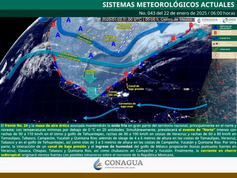Colima, México, Avanzada (22/01/2025).- Mientras gran parte de México enfrenta los efectos del frente frío No. 24 y la masa de aire ártico asociada, Colima se...