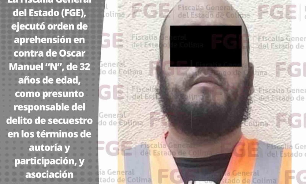 Colima, México, Avanzada (10/01/2025).- La Fiscalía General del Estado (FGE) ejecutó este 9 de enero una orden de aprehensión en contra de Oscar Manuel “N”, de...