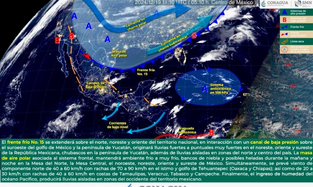 Colima, México, Avanzada (19/12/2024).- Este 19 de diciembre, se espera cielo medio nublado con lluvias aisladas en Colima, derivadas del ingreso de humedad del océano Pacífico....