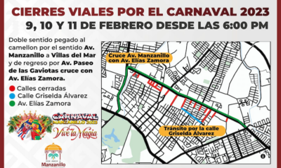Manzanillo, México, Comunicado (09/02/2023).- Derivado al desarrollo del Carnaval Manzanillo 2023 “Vive la magia” y el paso de los carros alegóricos y comparsas, el Ayuntamiento pide...