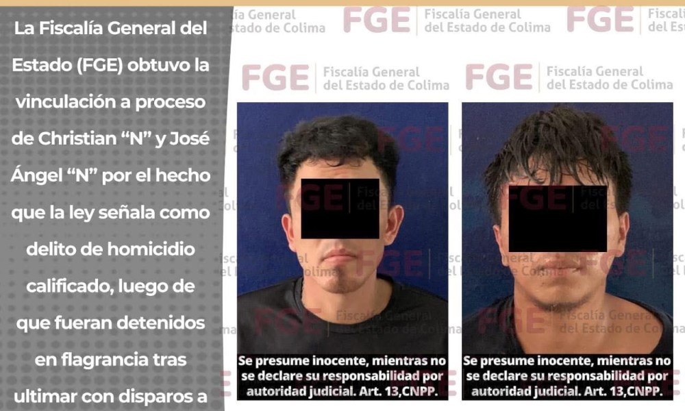 Colima, México, Avanzada (04/10/2025).- La Fiscalía General del Estado (FGE) logró la vinculación a proceso de Christian “N” y José Ángel “N” por el delito de...