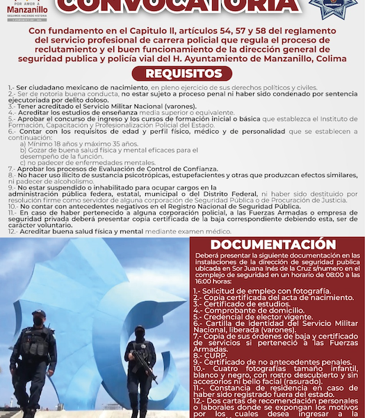 Manzanillo, México, Comunicado (25/01/2022).- Con la finalidad de fortalecer las filas de la Dirección General de Seguridad Pública y Policía Vial, el ayuntamiento de Manzanillo lanzó...