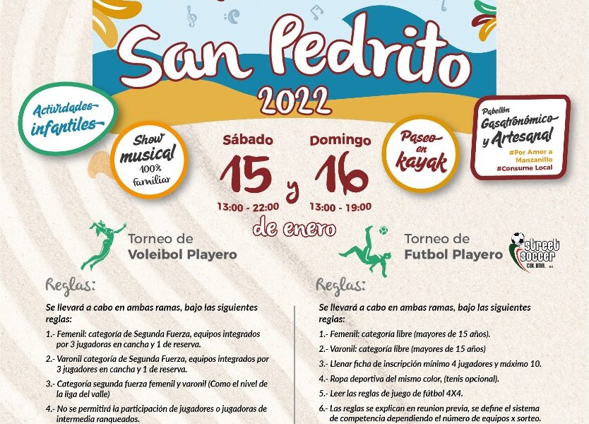 Manzanillo, México, Comunicado (11/01/2022).- El Ayuntamiento de Manzanillo realizará para este sábado 15 y domingo 16 de enero, el Segundo Festival San Pedrito, donde se llevará...