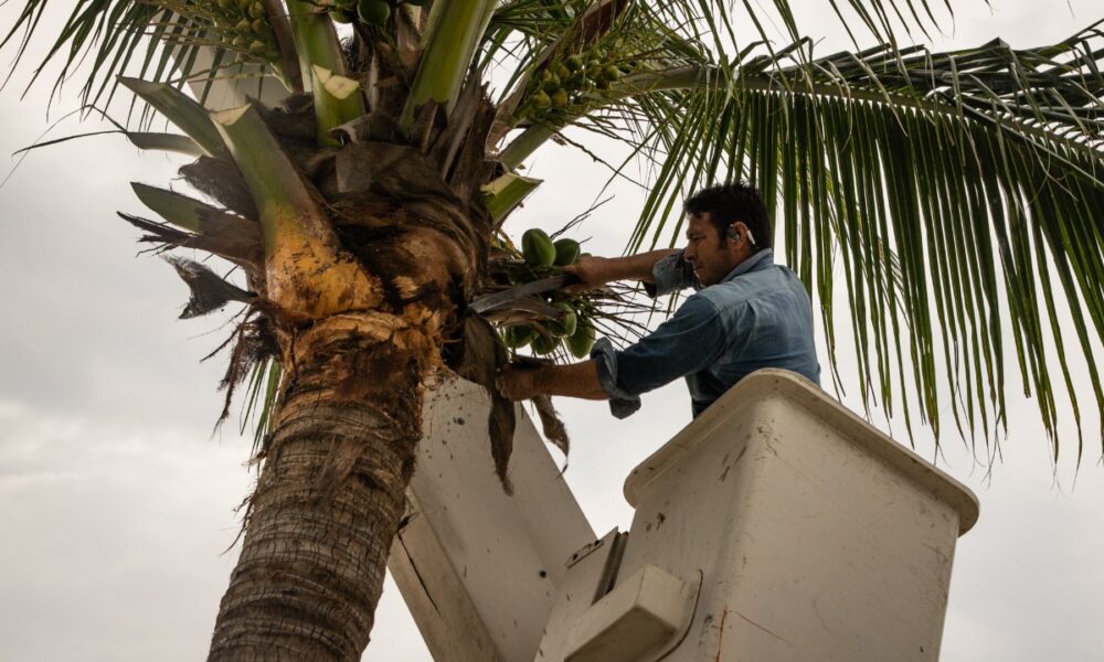 Manzanillo, México, Comunicado (30/10/2021).- Para un Manzanillo limpio y organizado, la dirección de Parques y Jardines del ayuntamiento poda y retira las palapas y cocos de...