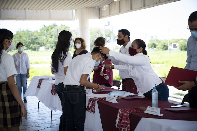 Manzanillo, México, Comunicado (13/08/2021).- En el marco del Día Internacional de la Juventud, la alcaldesa de Manzanillo, Griselda Martínez, entregó 129 de los 250 galardones y...