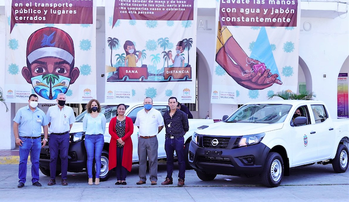 Colima, México, Avanzada (27/11/2020).- Para realizar tareas de supervisión de obras públicas, la Presidenta Municipal de Manzanillo, Griselda Martínez, entregó este jueves, dos camionetas nuevas Nissan...