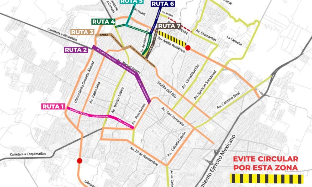 La Dirección de Tránsito y Vialidad de Colima invita a evitar circular por el Tercer Anillo Periférico por construcción del puente V. Carranza. Colima, México, Comunicado...