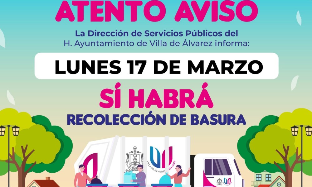 Villa de Álvarez, Colima, Comunicado (15/03/2025).- El Ayuntamiento de Villa de Álvarez, a través de la Dirección de Servicios Públicos, informa que este lunes 17 de...