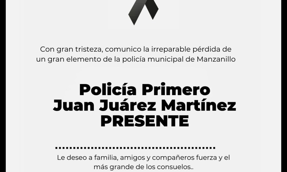 Colima, México, Avanzada (29/11/2024).- La madrugada de este viernes, Juan Juárez Martínez, elemento en activo de la Policía Municipal de Manzanillo fue asesinado mientras se dirigía...
