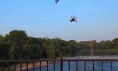 Un parapentista sobrevivió de forma milagrosa tras chocar con cables eléctricos y caer al río Rojo, en Dakota del Norte. El accidente fue captado en video...