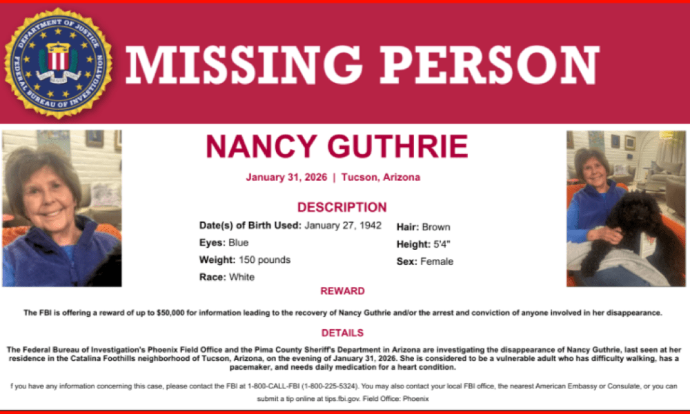 Avanzada (08/02/2026).- La desaparición de Nancy Guthrie, de 84 años, pasó en pocos días de ser una preocupación familiar a convertirse en una investigación federal marcada...