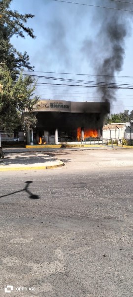 Jalisco, México, Avanzada (22/02/2026).- Una sucursal bancaria del Banco del Bienestar en el municipio de Ciudad Guzmán, Jalisco, fue incendiada la mañana de este domingo. La...