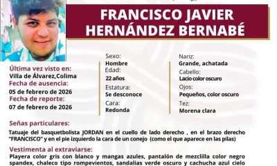 Colima, México, Avanzada (07/02/2026).- La Comisión de Búsqueda de Personas del Estado de Colima emitió una ficha de localización para Francisco Javier Hernández Bernabé, joven de...