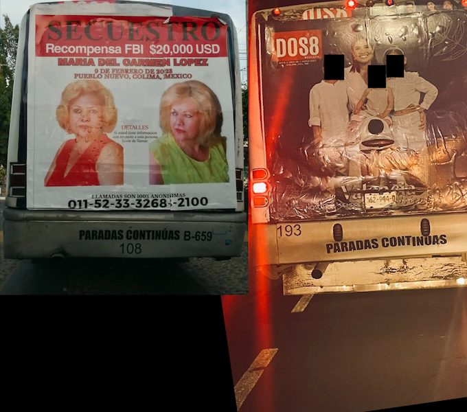 Colima, México, Avanzada (10/05/2023).- Mientras la delegada de los Programas del Bienestar, Viridiana Valencia Vargas utiliza las unidades de transporte público para promocionar su imagen, familiares...