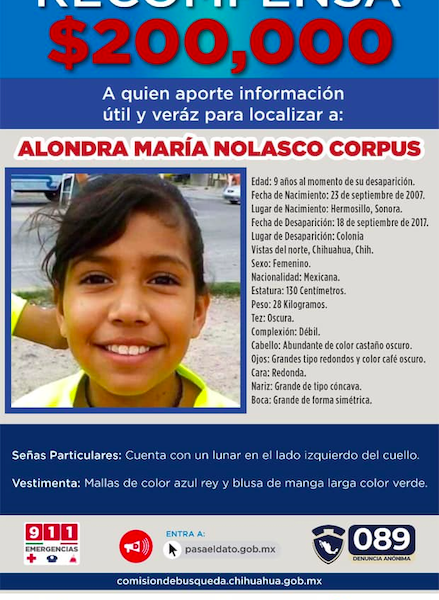 Chihuahua, México, Avanzada (20/10/2020).- La Comisión de Búsqueda de Chihuahua ofrece una recompensa de 200 mil pesos por cada persona a quien proporcione información útil y...