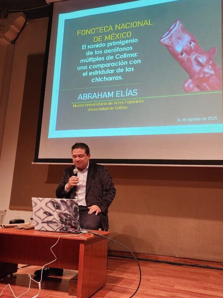 Abraham Elías dijo que su conferencia abordó algunos de los hallazgos obtenidos durante sus últimos años de investigación dedicados a las flautas dobles de Colima, que...