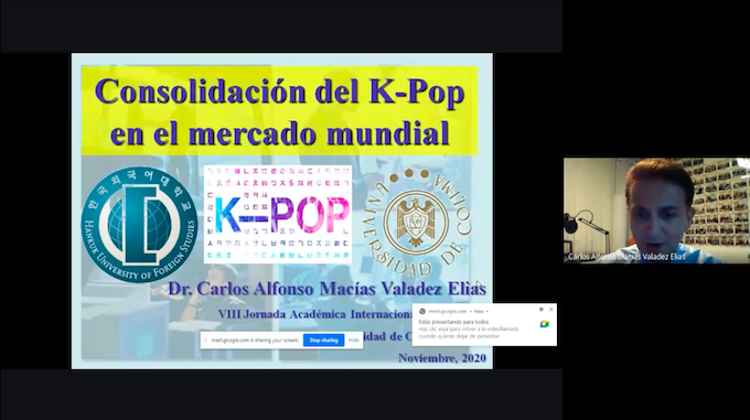 Colima, México, Comunicado (13/11/2020).- Con la conferencia “La consolidación del K-Pop en el mercado mundial”, dictada por el investigador Carlos Alfonso Macías Valadez, quien trabaja para...