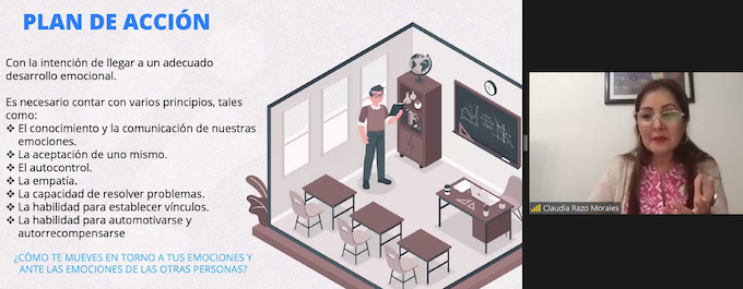 Colima, México, Comunicado (28/01/2022).- Claudia Razo Morales, especialista en psicoterapia para adultos y docente en las facultades de Pedagogía y Psicología, impartió la charla “Una mirada...