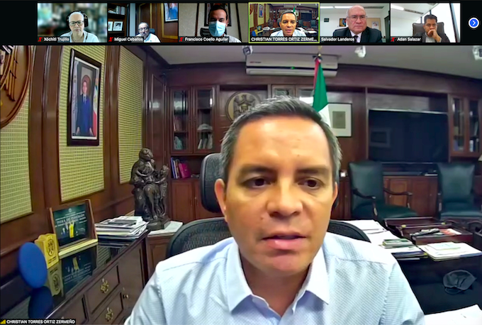 Colima, México, Avanzada (08/09/2021).- Este martes, de manera virtual, se realizó una reunión de trabajo entre la Agencia Espacial Mexicana (AEM) y la Universidad de Colima,...