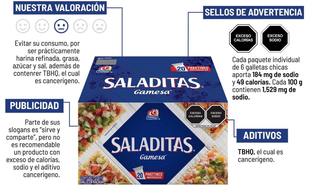 Colima, México, Avanzada (23/05/2025).- La organización El Poder del Consumidor advirtió que las galletas saladas Saladitas Gamesa, ampliamente consumidas en México, contienen ingredientes que representan un...