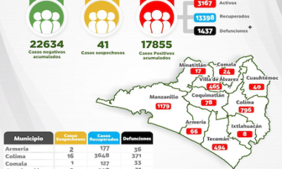 Colima, México, Comunicado (20/07/2021).- Colima registra durante la última jornada 35 casos nuevos y tres defunciones por Covid-19, según el reporte de las instituciones del Sector...