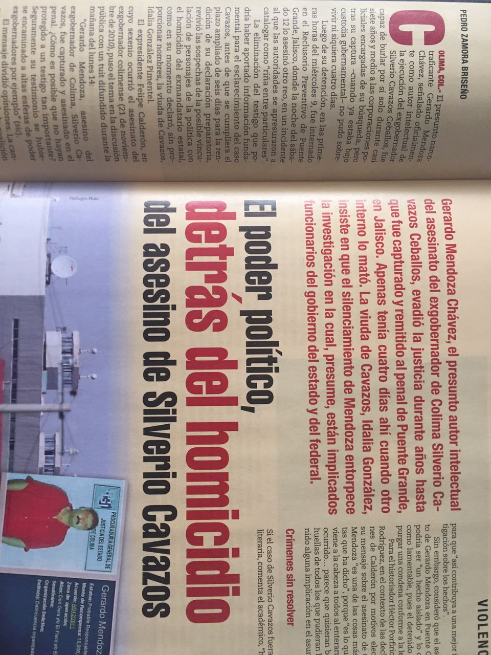 Colima, México, Avanzada (21/05/2018).- Bajo el encabezado: “El poder político, detrás del homicidio del asesino de Silverio Cavazos”, la revista Proceso publica en su edición de...