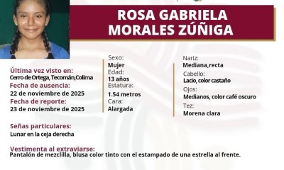 Colima, México, Avanzada (24/11/2025).- Las autoridades estatales activaron un operativo de búsqueda para localizar a Rosa Gabriela Morales Zúñiga, una adolescente de 13 años que desapareció...