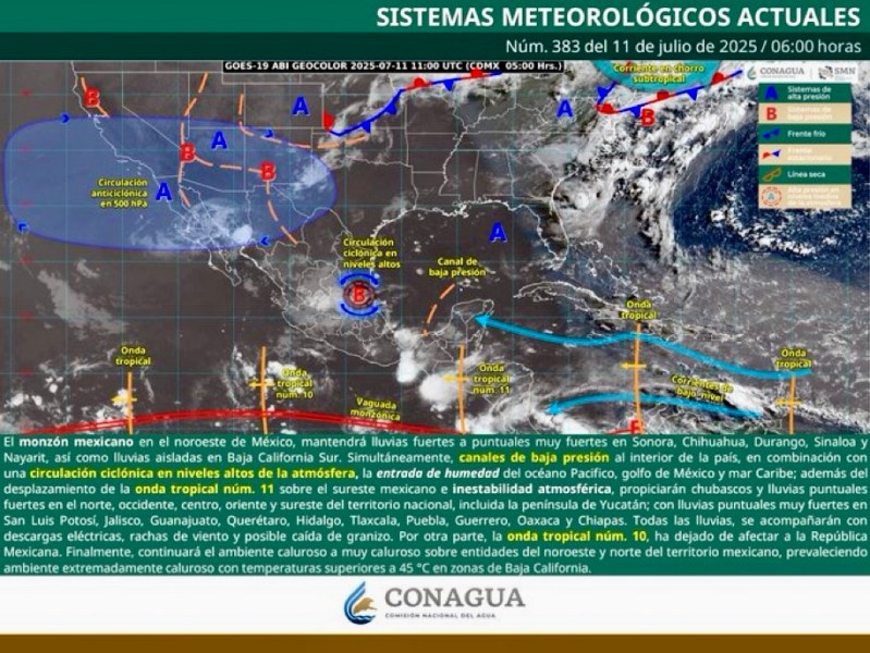 Colima, México, Avanzada (11/07/2025).- Este viernes, el estado de Colima se verá afectado por condiciones climáticas adversas derivadas de diversos fenómenos meteorológicos, incluyendo la entrada de...