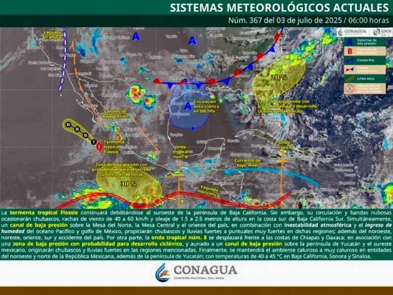 Colima, México, Avanzada (03/07/2025).- Colima continúa bajo vigilancia meteorológica este jueves debido a los efectos indirectos de la tormenta tropical Flossie, la cual sigue debilitándose al...