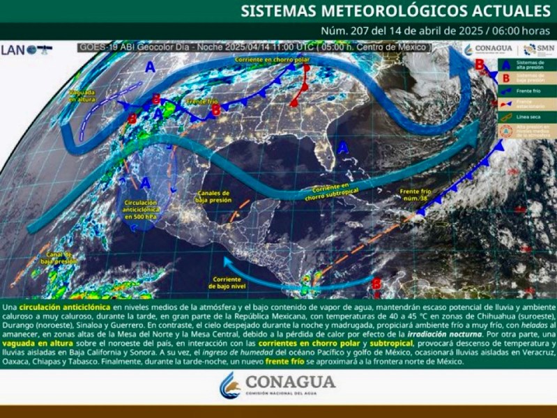 Colima, México, Avanzada (14/04/2025).– Este lunes, el estado de Colima registrará condiciones de cielo despejado, ambiente caluroso y sin probabilidad de lluvias, como consecuencia de una...