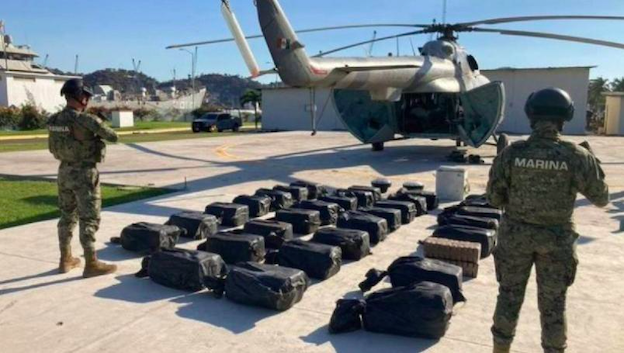 Colima, México, Avanzada (24/02/2021).- Elementos de la secretaría de Marina y la Guardia Nacional detuvieron a una persona que transportaba 611 paquetes de presunta cocaína en...