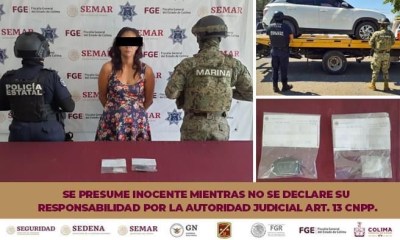 Colima, México, Avanzada (05/11/2024).- Agentes de la Policía Estatal Preventiva, en coordinación con elementos de la Secretaría de Marina Armada de México, detuvieron a una mujer...
