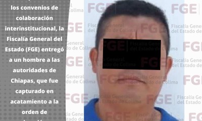 Colima, México, Comunicado (10/10/2024).- La Fiscalía General del Estado de Colima entregó a un hombre a las autoridades de Chiapas, que fue capturado en acatamiento a...