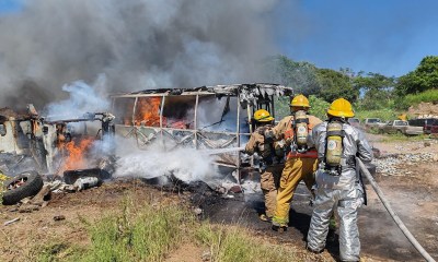 Colima, México, Avanzada (11/10/2024).- Elementos de Protección Civil del municipio de Cuauhtémoc, Colima, atendieron un incendio de vehículos sobre la carretera que conecta Cuauhtémoc con Buenavista....