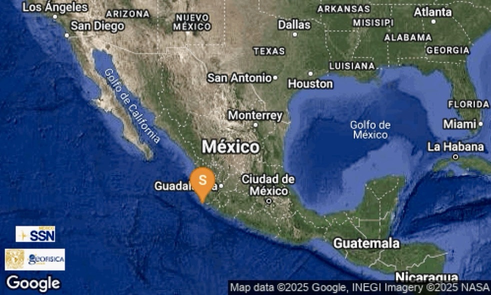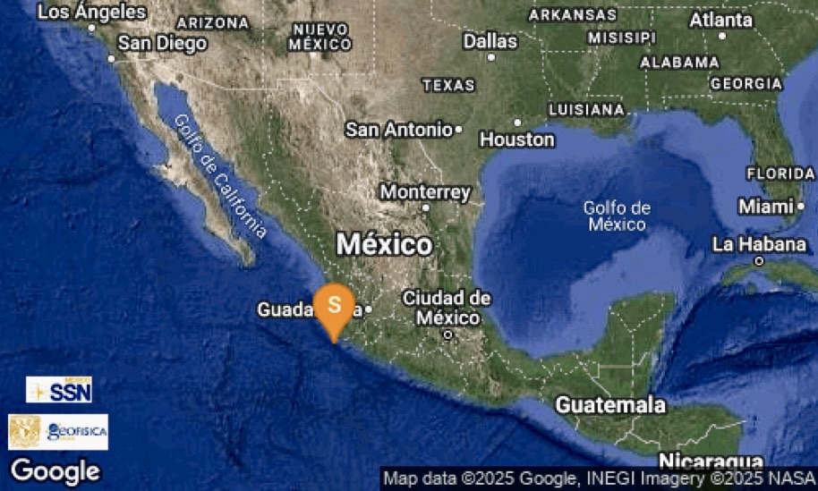 Jalisco, México, Avanzada (19/05/2025).- La madrugada de este 19 de mayo, un sismo de magnitud 4.1 se registró a 74 kilómetros al suroeste de Cihuatlán, Jalisco,...