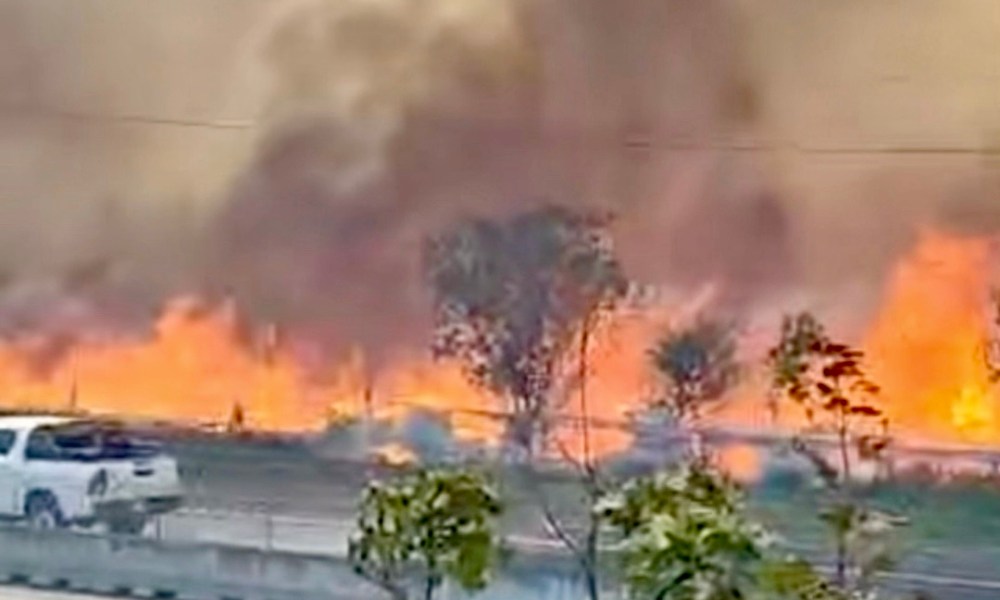 Jalisco, México, Avanzada (07/03/2025).- Un fuerte incendio de pastizal se registró la tarde de este viernes en la autopista Guadalajara-Colima, a la altura del kilómetro 90,...