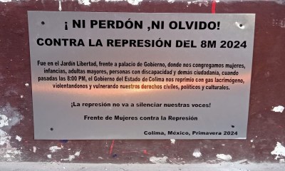 Colima, México, Avanzada (29/04/2024).- Desde el día sábado, una placa conmemorativa fue instalada en el Palacio de Gobierno de Colima por integrantes del Frente de Mujeres...